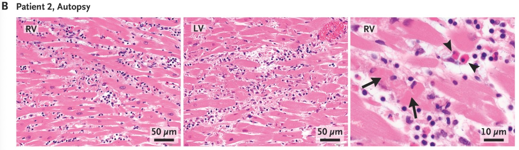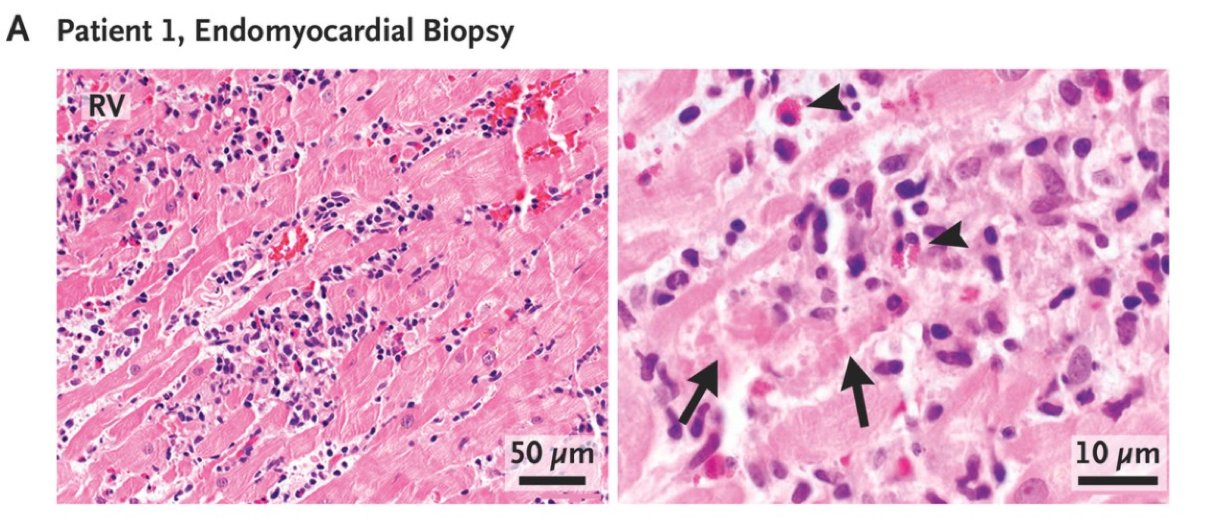 权威医学期刊《新英格兰医学杂志》(NEJM)近日报告了2例接种mRNA疫苗后出现心肌炎的病例,其中1人死亡。此前报告的接种mRNA疫苗后出现心肌炎,都是通过无创影像学和常规实验室检测确定的。这次除了前述手段外,还增心内膜心肌活检和尸检的组织病理学发现。